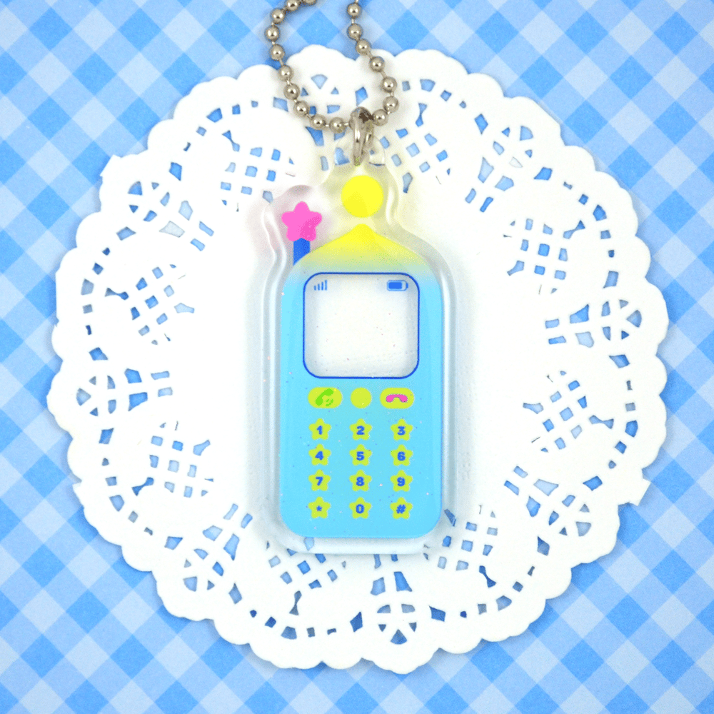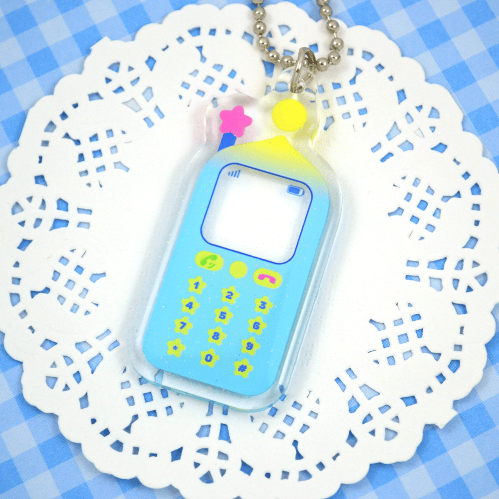 A Chao themed cellphone keychain~! It has a transparent screen, perfect for putting a small sticker in the center~