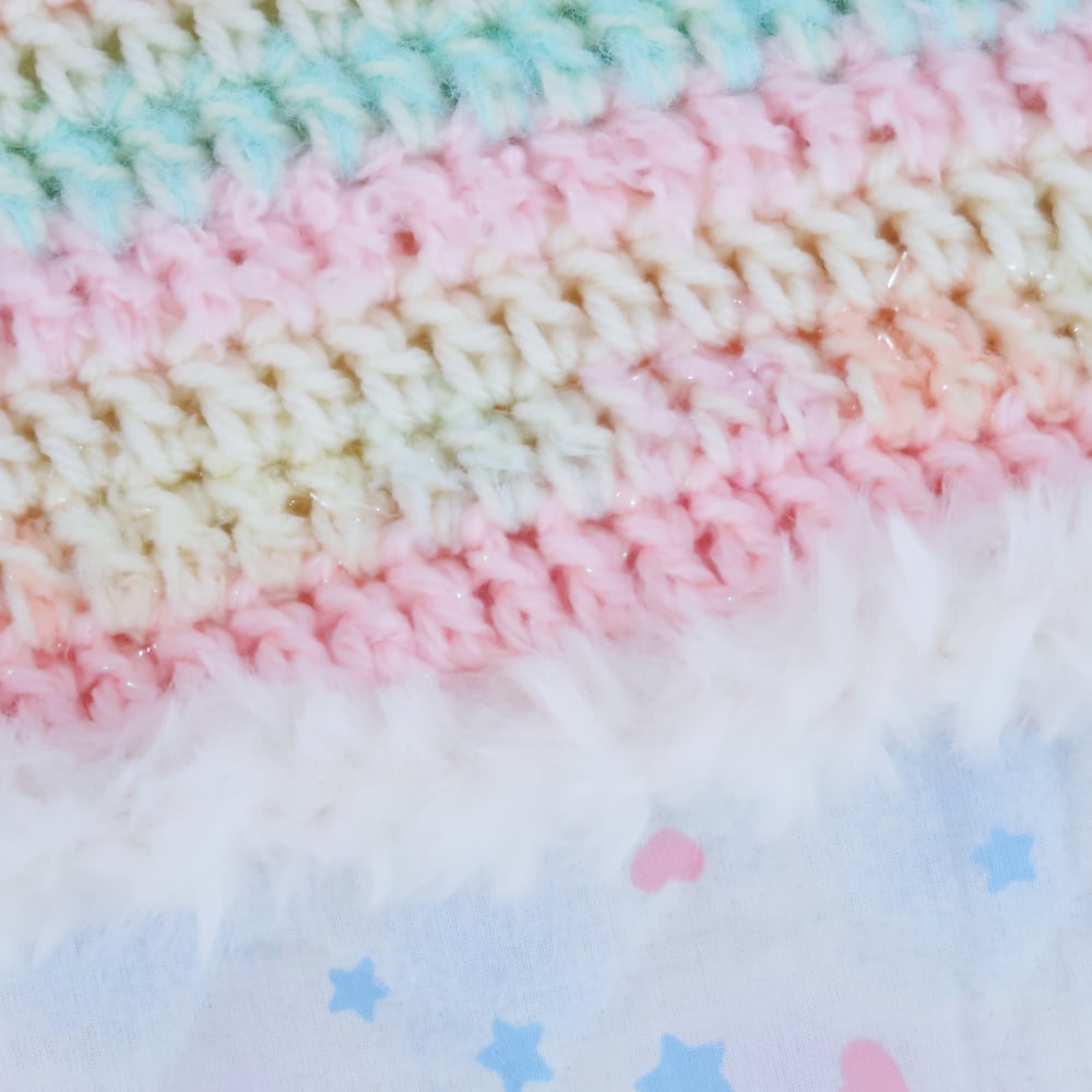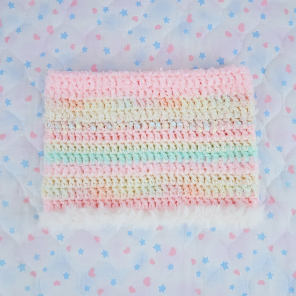 A crocheted pastel cat ear hat~ The opening to the hat features fluffy soft faux fur~