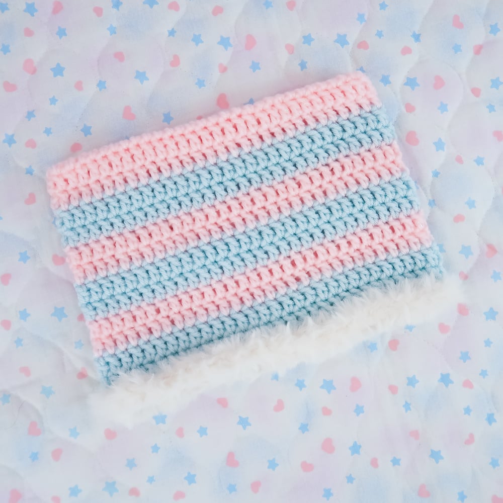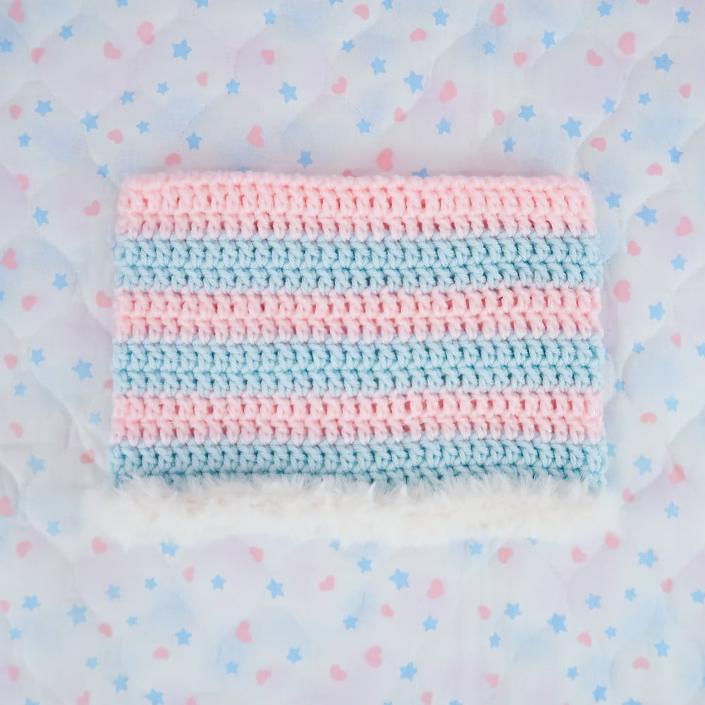 A crocheted pastel cat ear hat~ The opening to the hat features fluffy soft faux fur~
