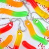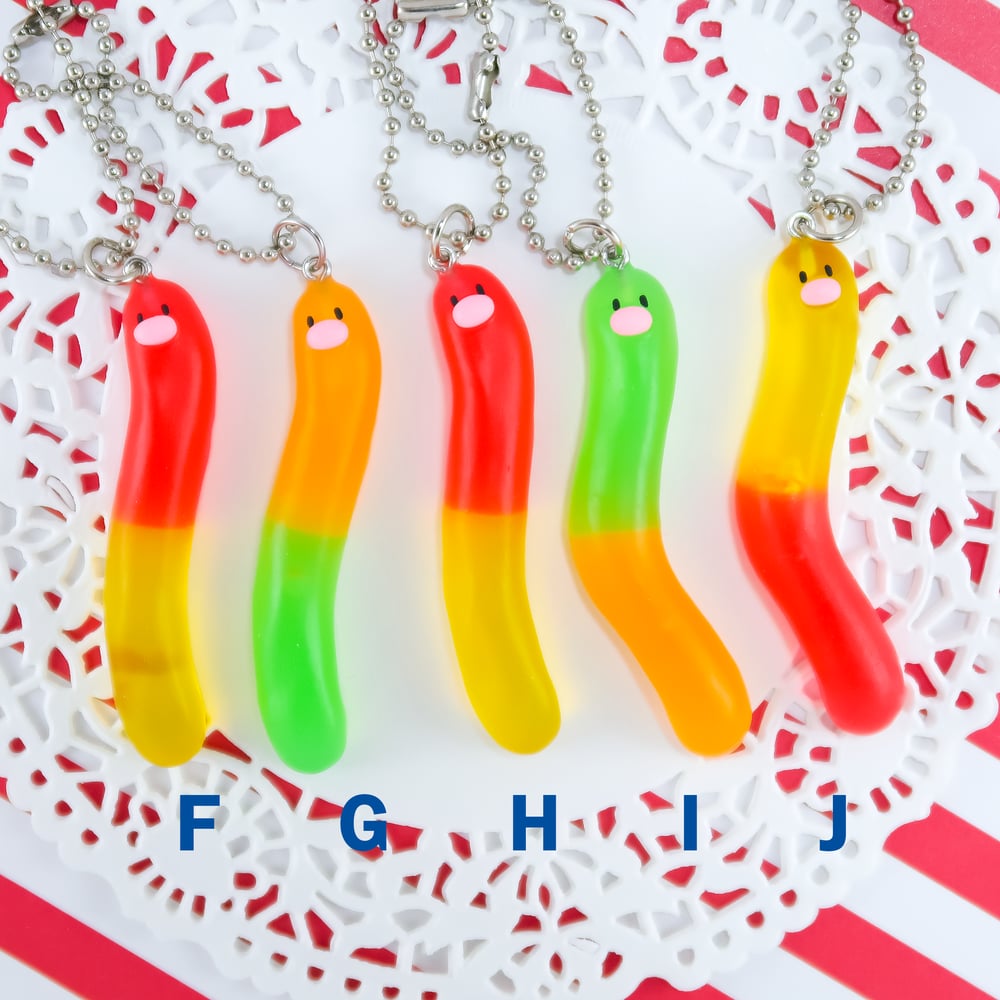 A delicious gummy diglett candy as a keychain~ Each keychain is hand-painted and coated with sealant to protect their faces~