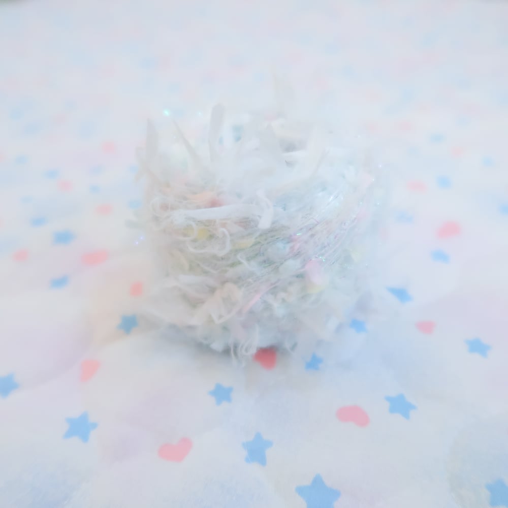 A happy cake of yarn featuring a mixture of different textures and some hand dyed yarn!