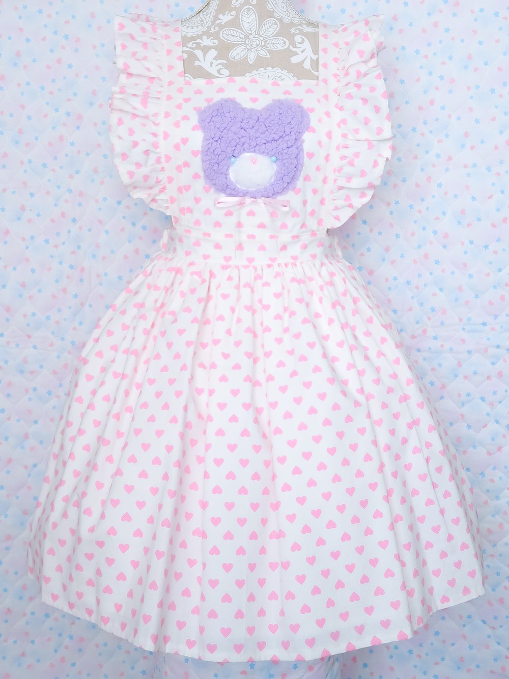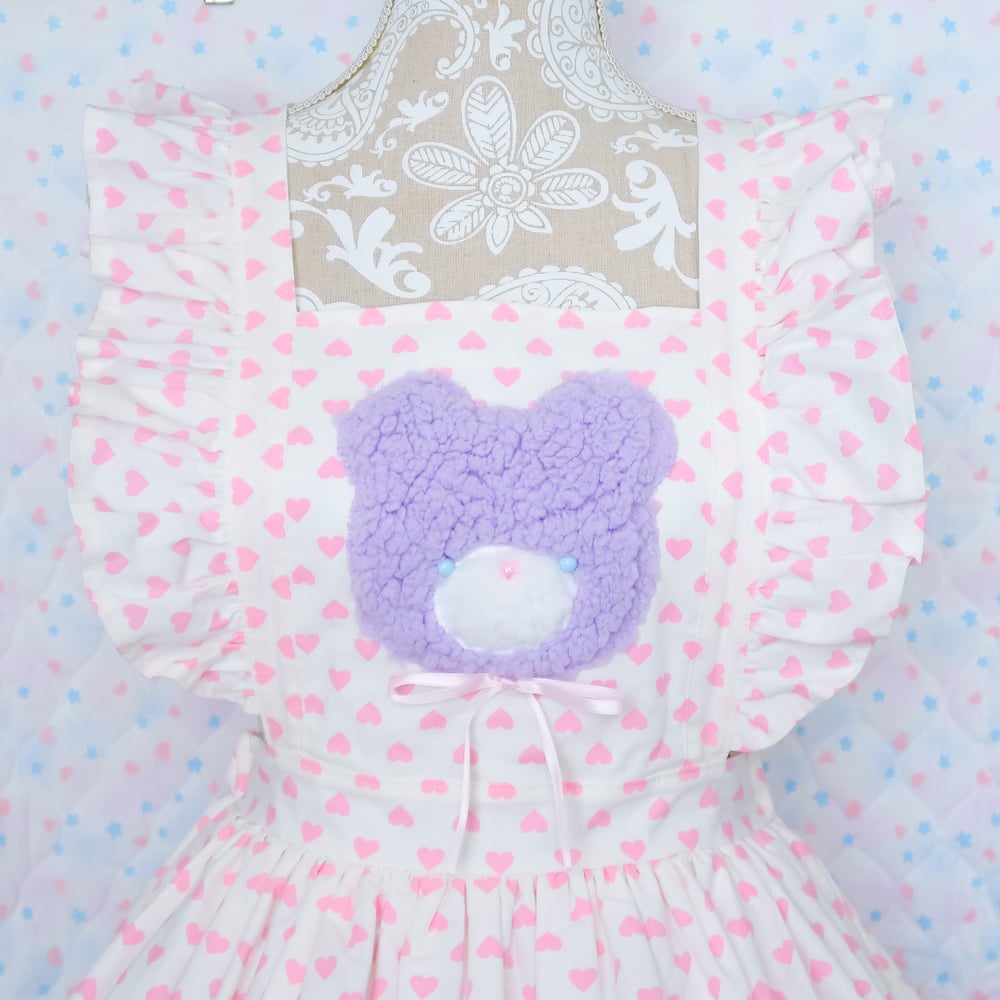 An apron skirt with straps that are adjustable at the backside of the waist by choosing from three button hole options! The skirt has elastic around the waist for comfort and fit~