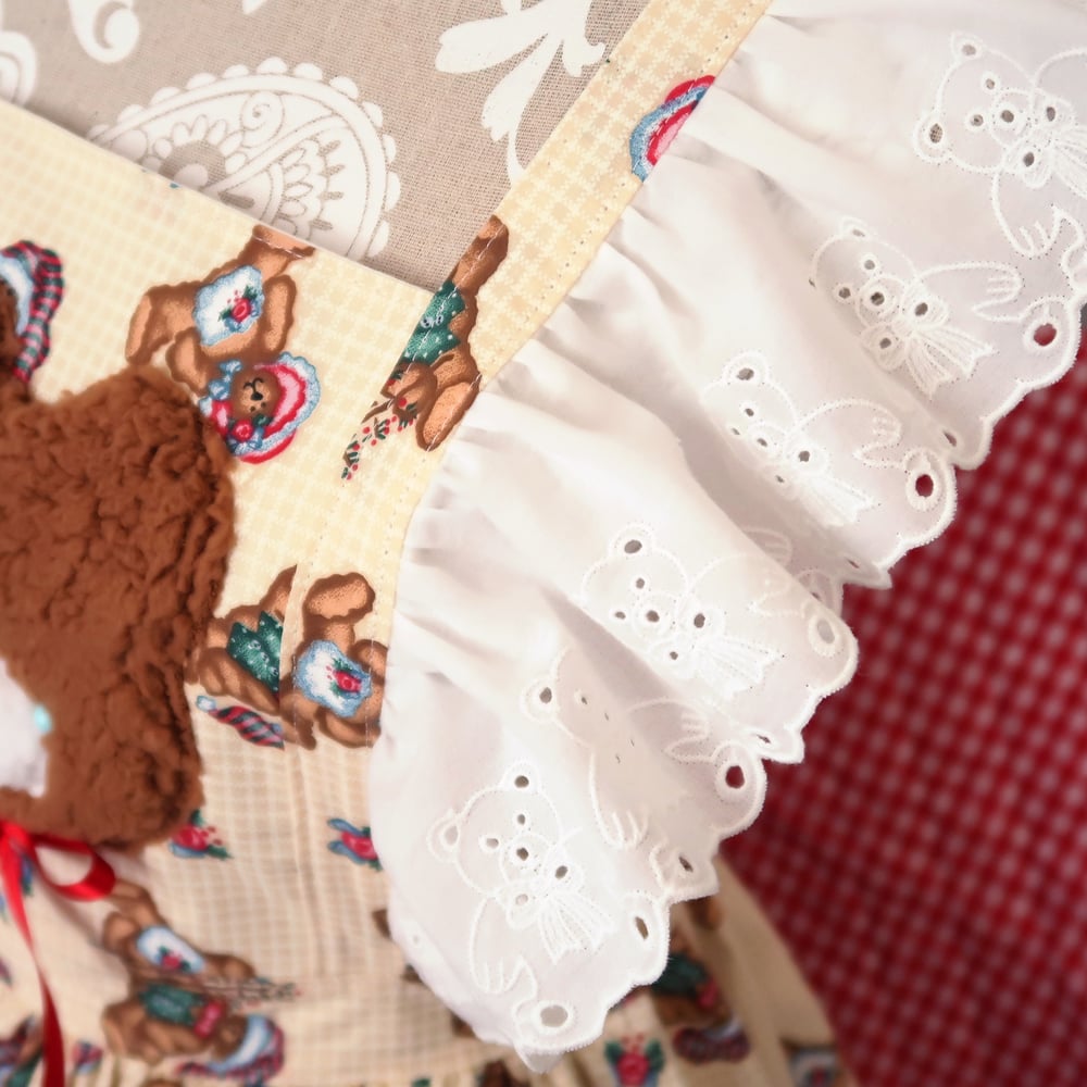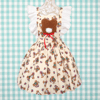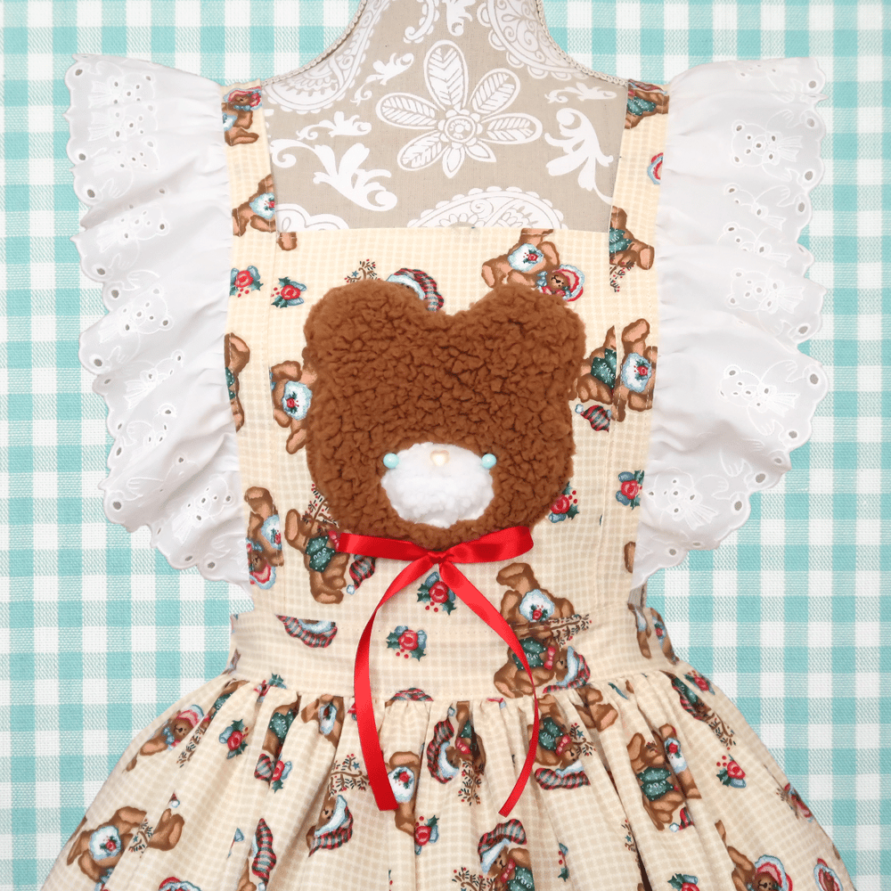 An apron skirt with straps that are adjustable at the waist by choosing from three button hole options! The skirt has elastic around the waist for comfort and fit~