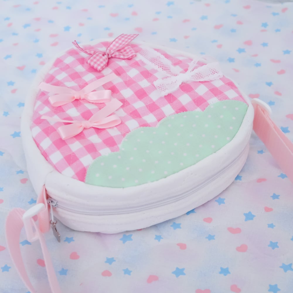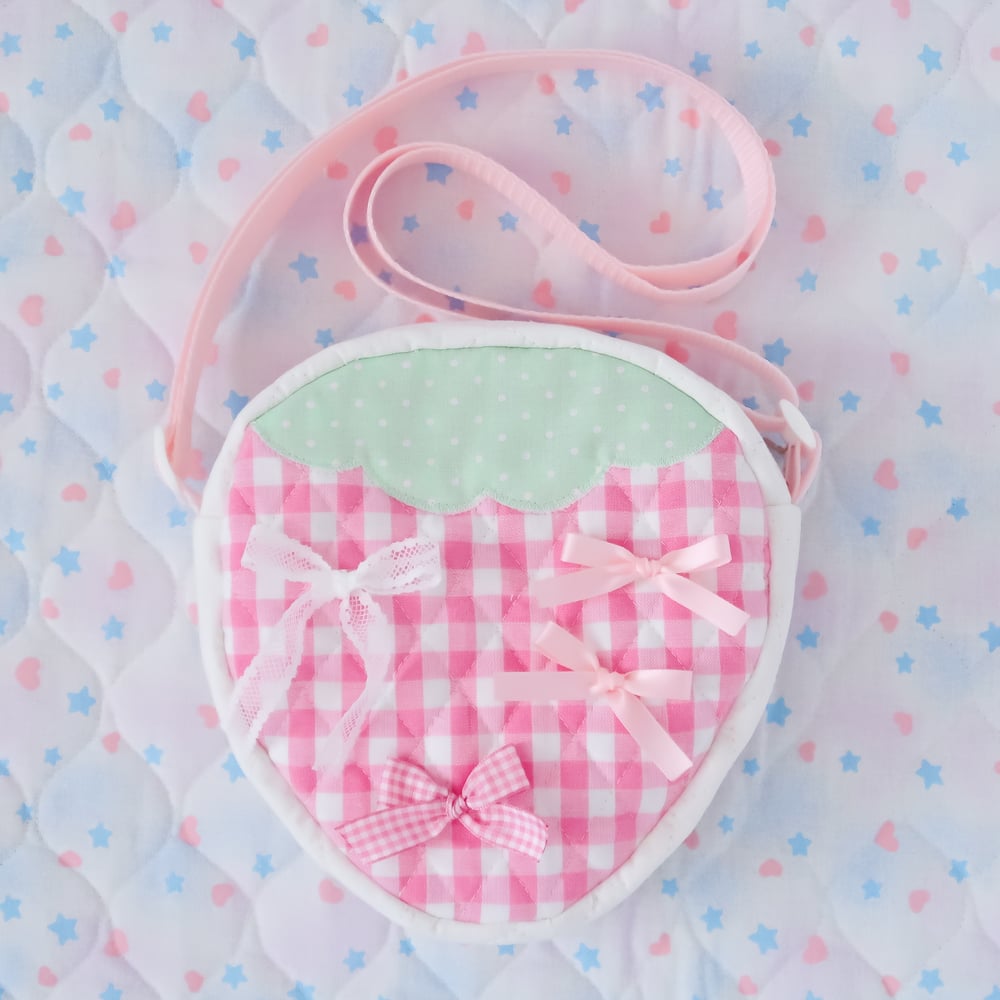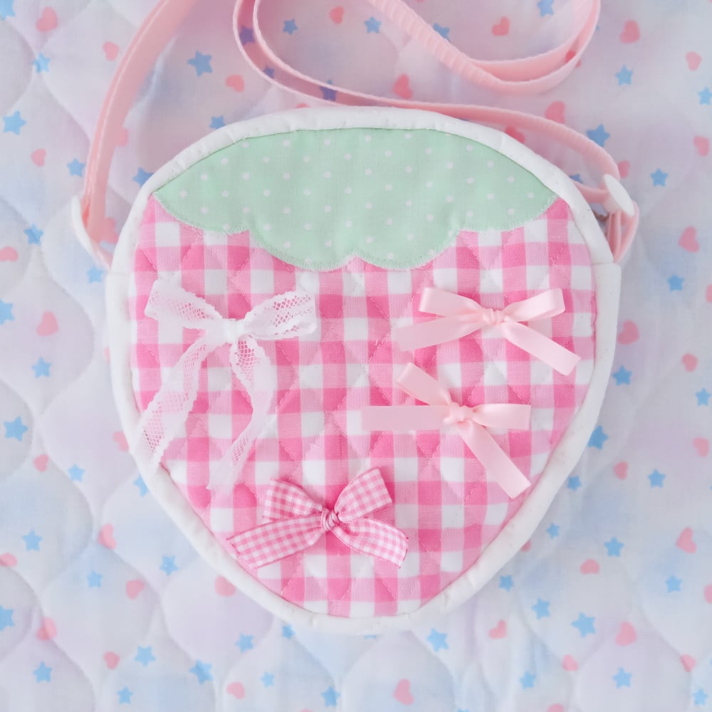 A strawberry-shaped bag decorated with different kinds of ribbons~